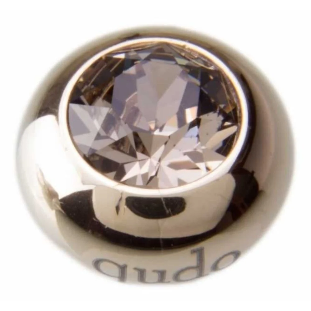 This Qudo Famosa 10mm Tondo Top has a Greige Swarovski Gem in a 14ct Gold Plated Stainless Steel Case. Tops are easy to change for a unique look. Hand Made in Germany.